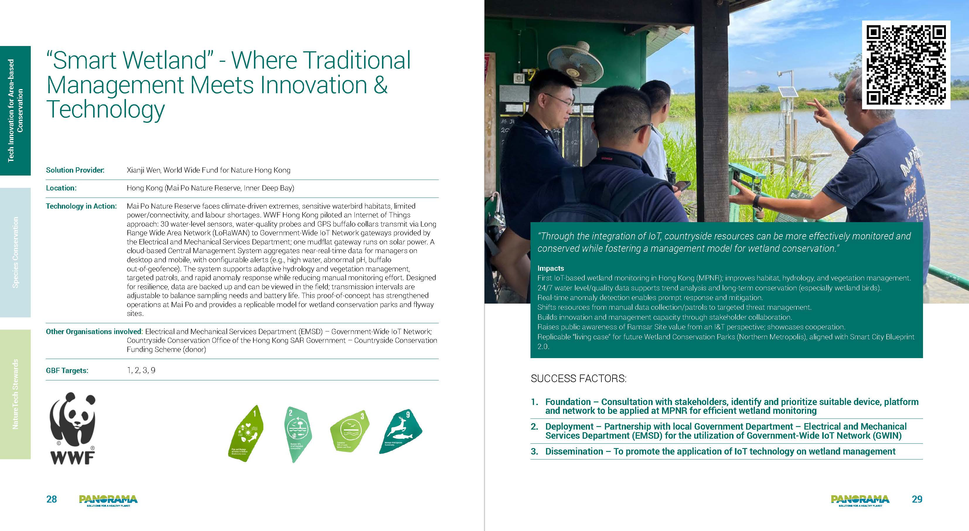 Funded by the Countryside Conservation Funding Scheme and implemented by WWF-Hong Kong, the project "Smart Wetland – Where Traditional Management Meets Innovation & Technology" has been featured by the International Union for Conservation of Nature (IUCN) on its PANORAMA platform and its publication "Solutions in Focus: Tech4Nature" as an global inspiring solution in the field of "Tech Innovation for Nature Conservation".
