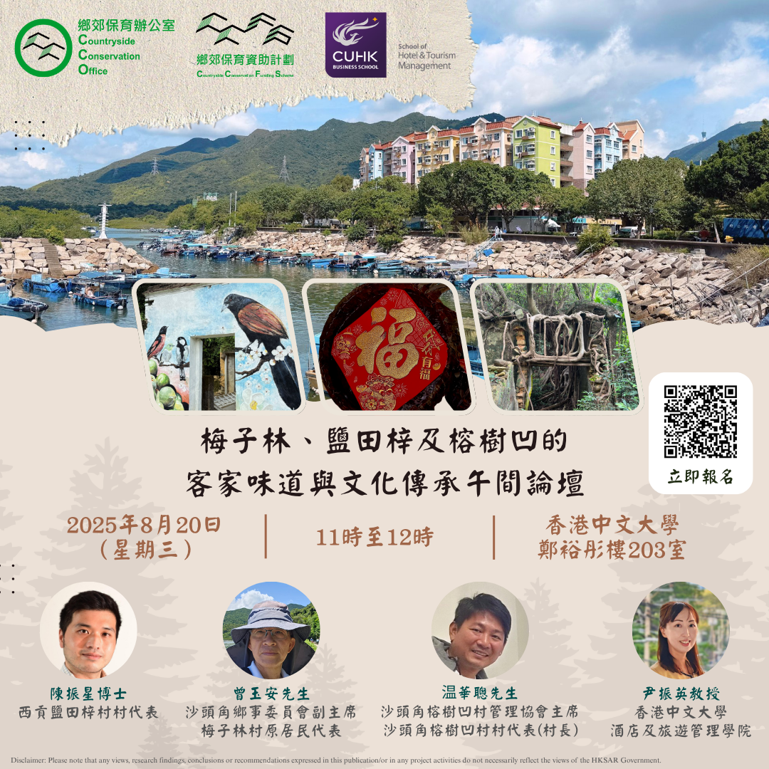 本午宴论坛汇聚来自梅子林、盐田梓及榕树凹的代表,共同分享客家饮食文化。透过故事、传统及地道菜肴的交流,此活动旨在促进交流、理解和欣赏,展现这些独特乡村小区的丰富文化遗产与饮食传承。