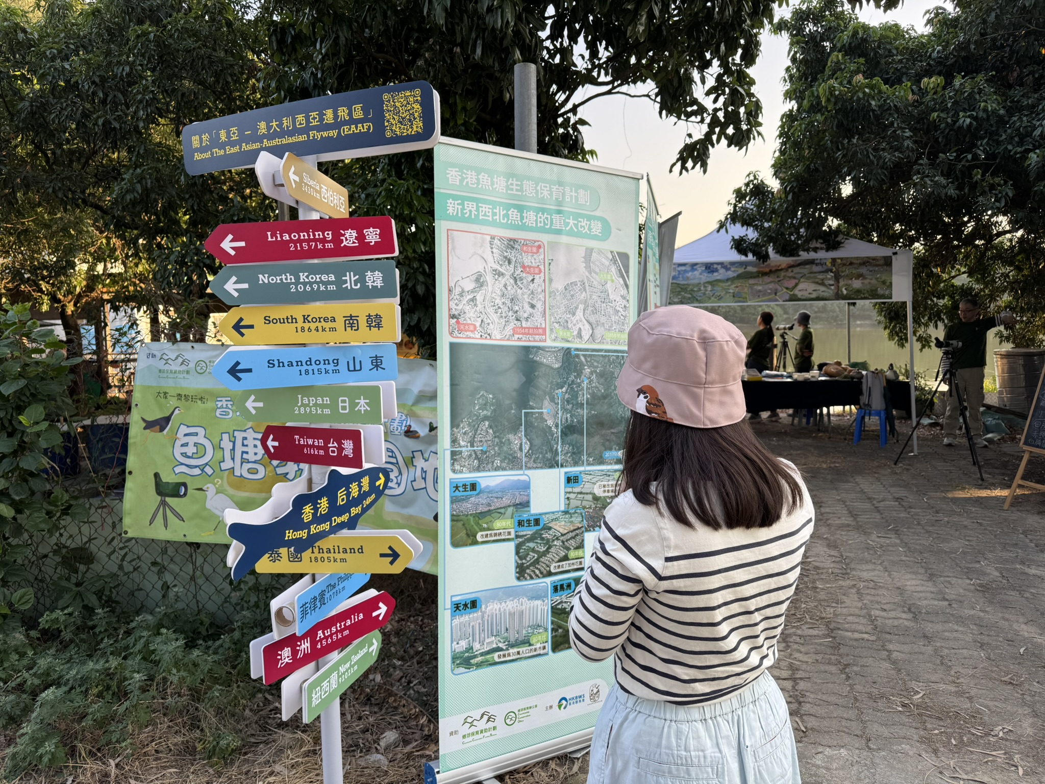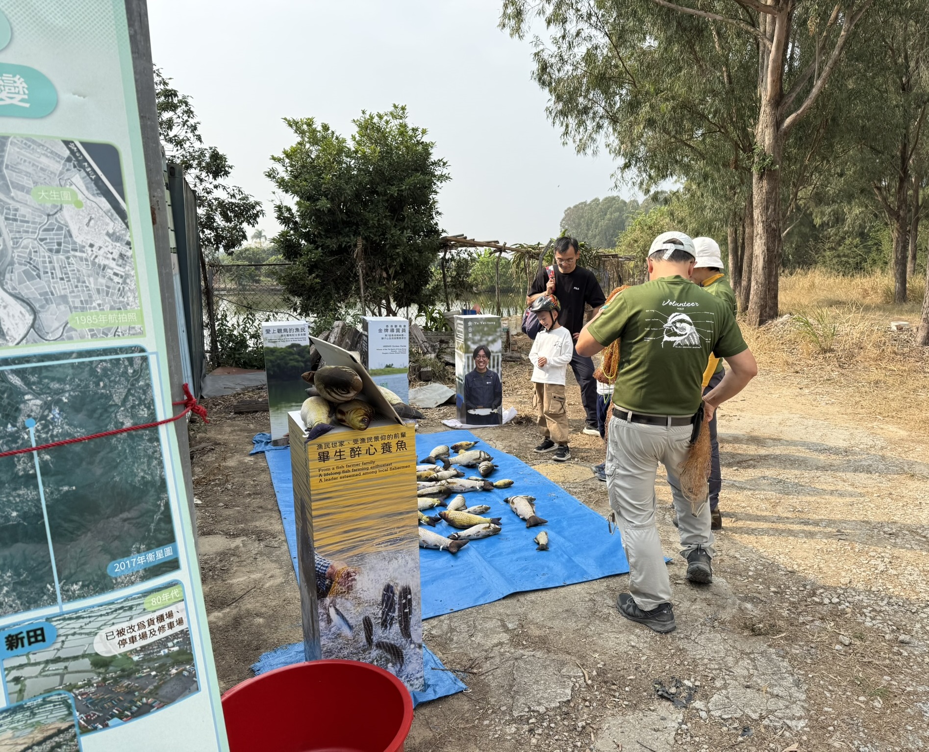 由生态导赏员带领参观鱼塘范围,认识本地淡水鱼养殖业的传统运作及其生态价值、项目机构在地的保育工作及观赏各式各样的水鸟。