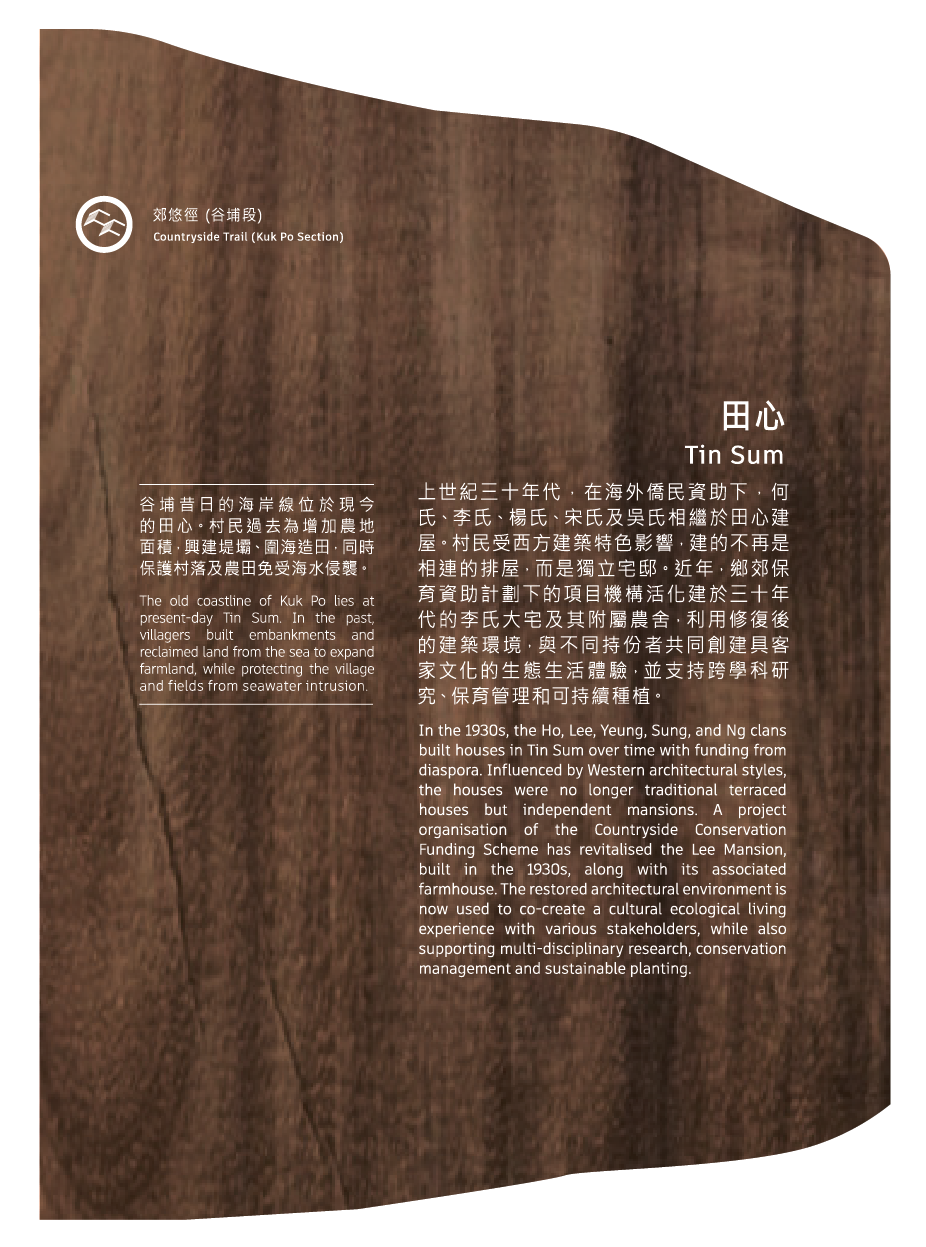 谷埔昔日的海岸線位於現今的田心。村民過去為增加農地面積,興建堤壩、圍海造田,同時保護村落及農田免受海水侵襲。