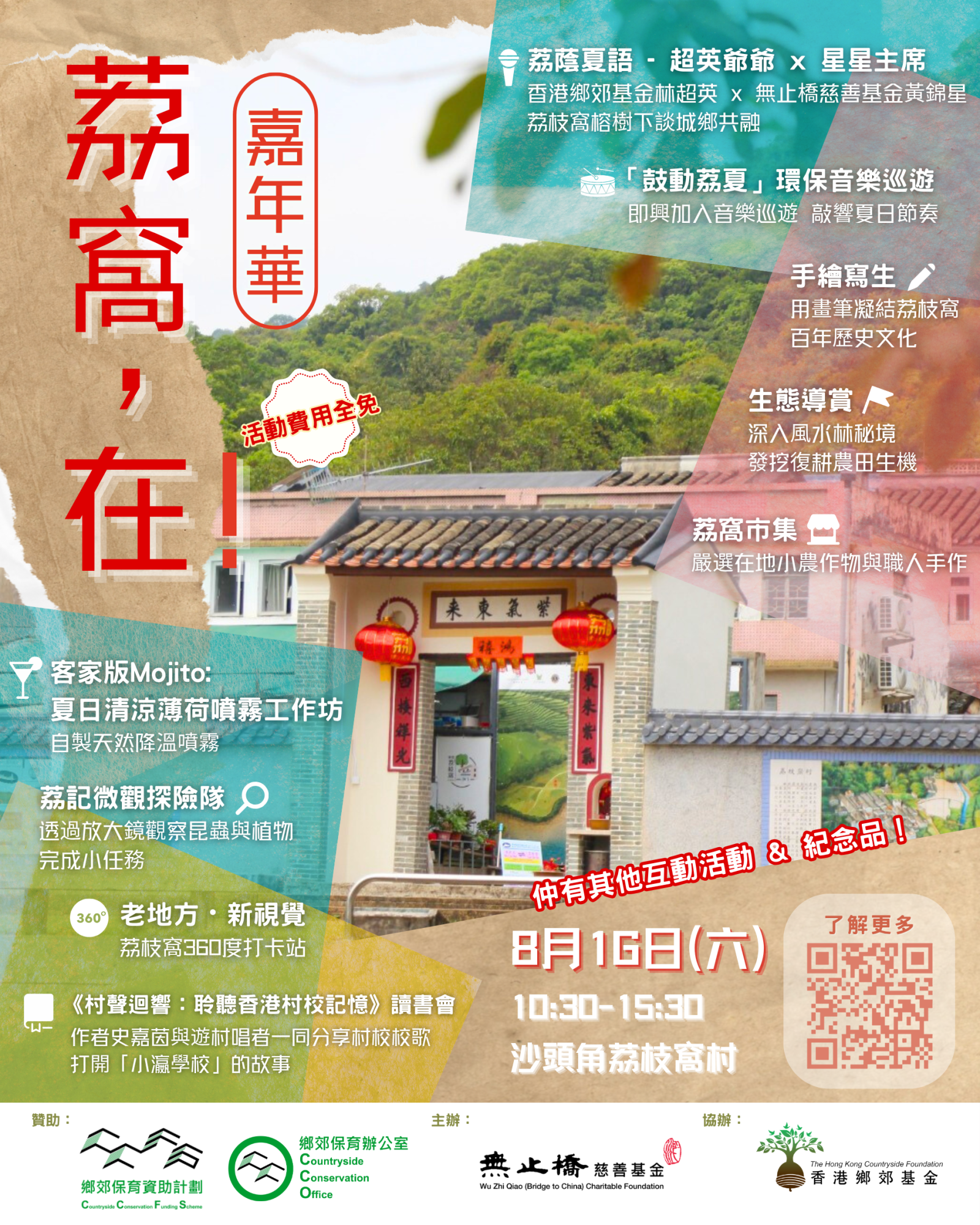 響應 8.15「全國生態日」,無止橋慈善基金主辦、香港鄉郊基金協辦首屆「荔窩,在!嘉年華」,將舉辦一系列體驗活動🤹♀️,例如工作坊、市集、導賞團、Busking以及互動遊戲等等,藉此增強公眾對環境保護嘅意識,推廣生境、物種和客家文化嘅保育🌲。
