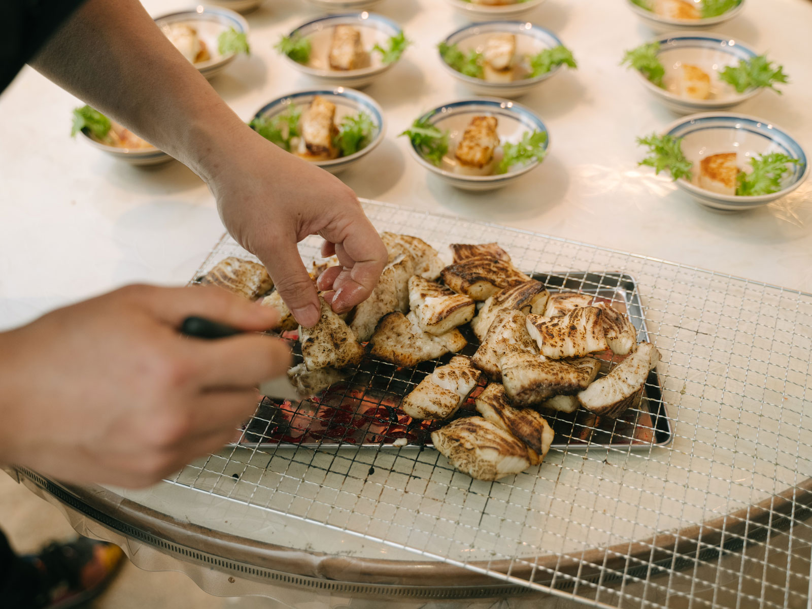 烤羅非魚配魚米粥是以煎煮過的羅非魚魚骨熬成,再加入河上鄉出產的糯米。