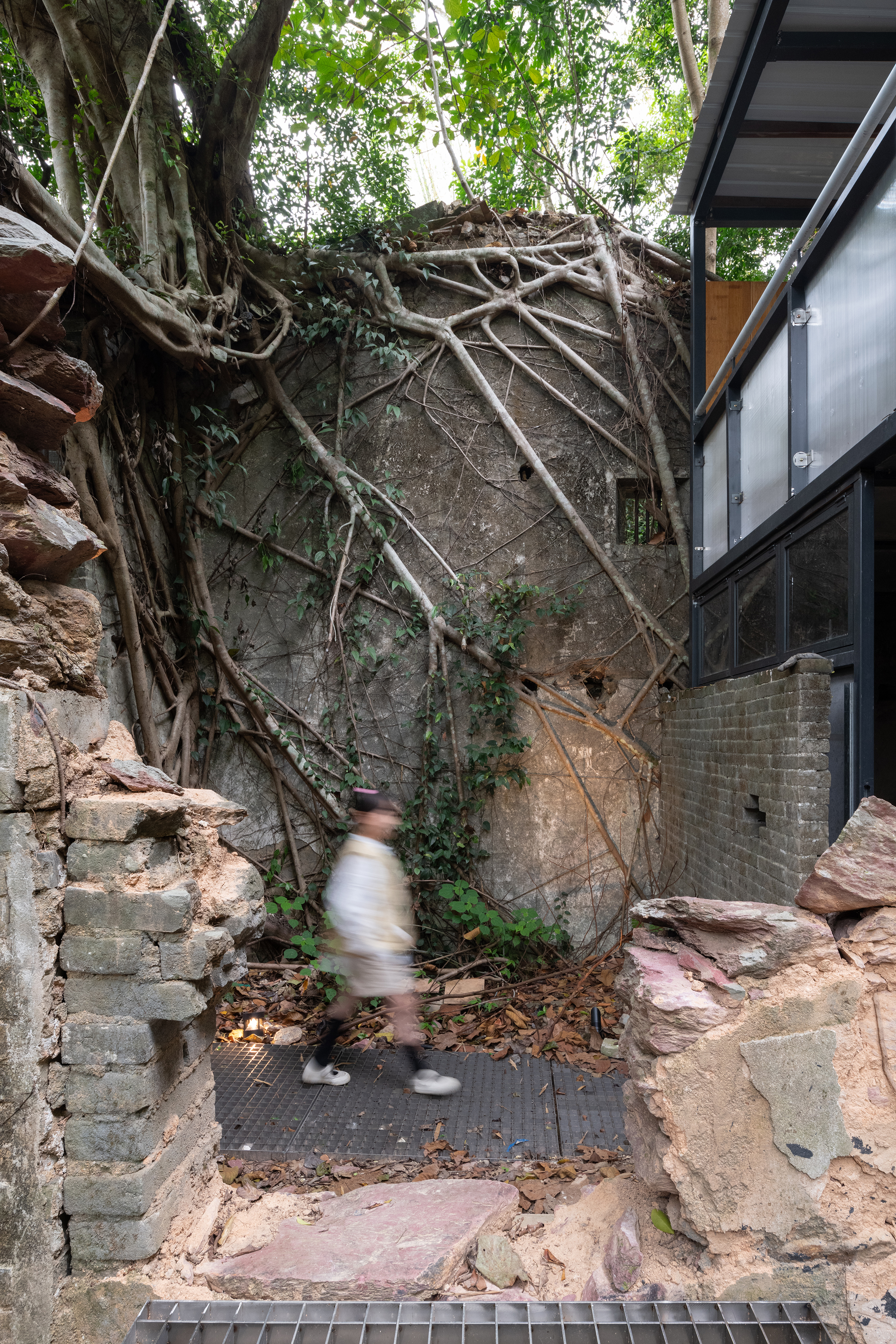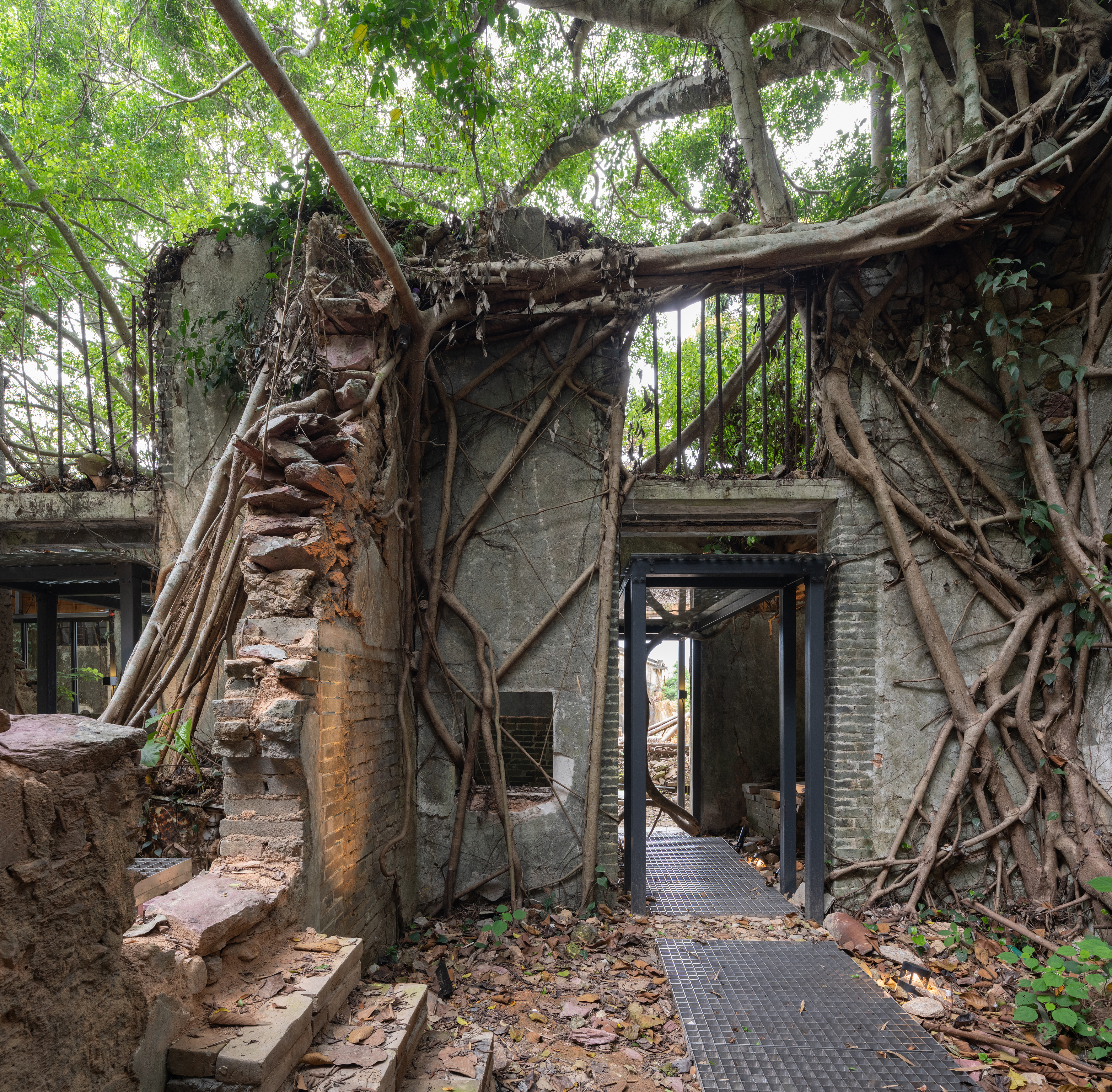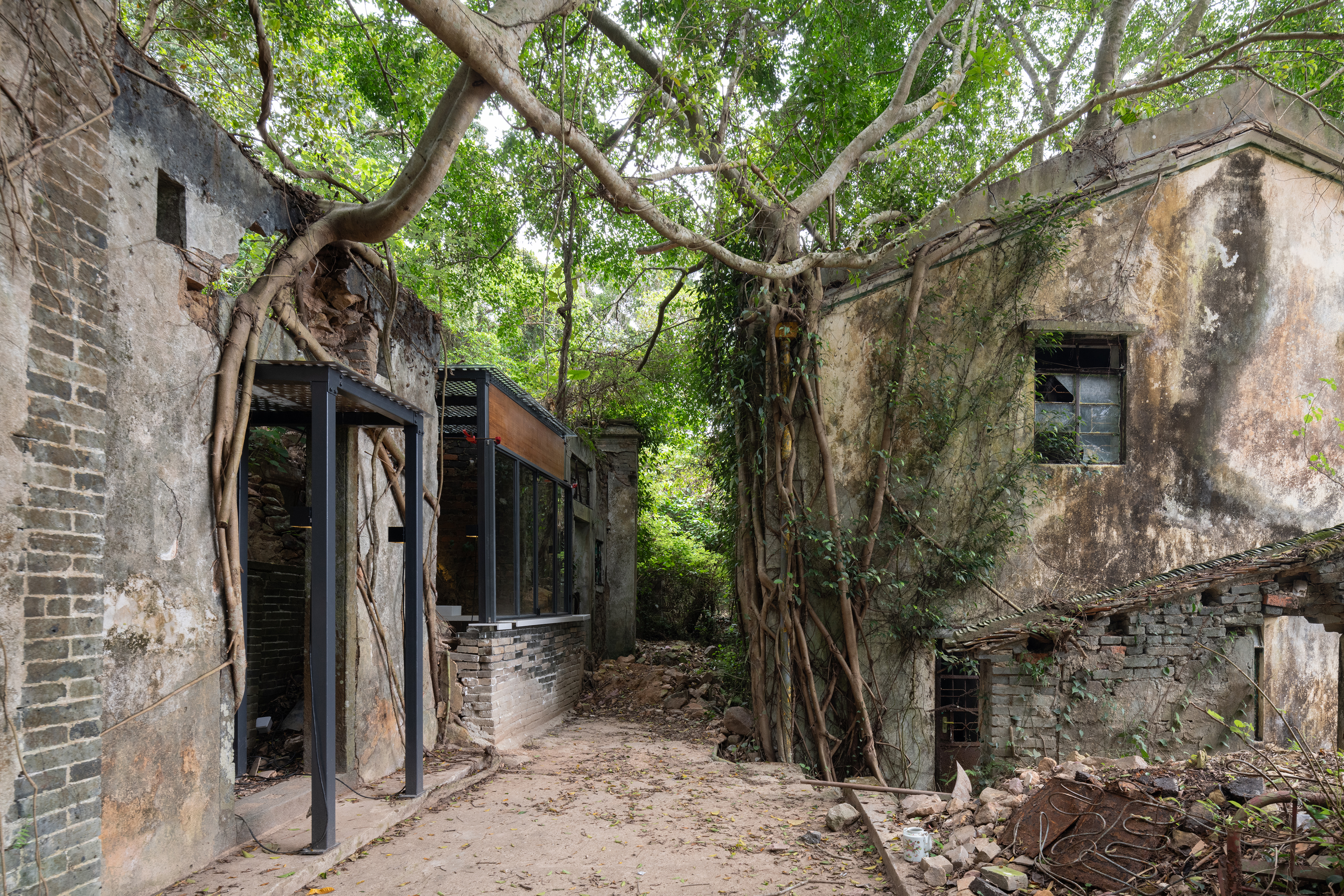 由於缺乏維護,百年村屋已被大自然接管,形成共生關係。